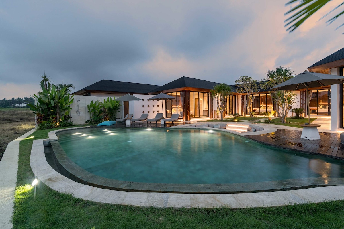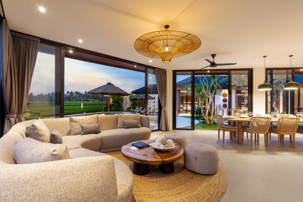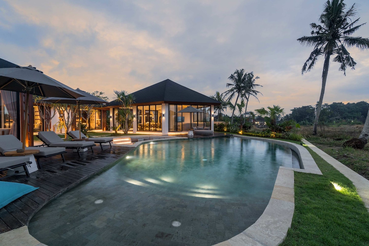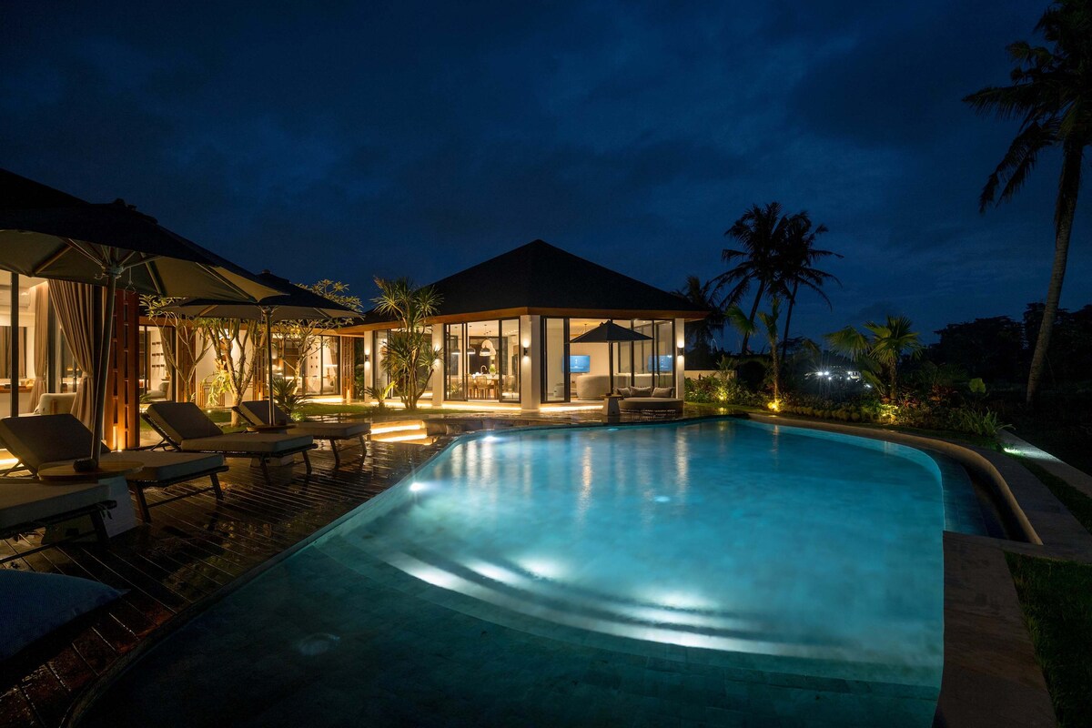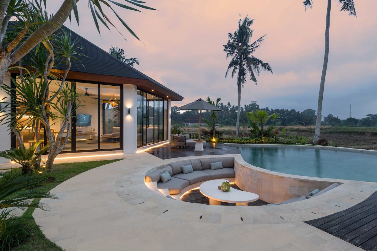 Exceptional pool photography with professional composition and lighting variety from day to night. The infinity pool with rice field views and unique sunken conversation pit create strong visual appeal. While technically excellent, the photos could benefit from more luxury lifestyle staging and intimate tropical atmosphere like top performers.