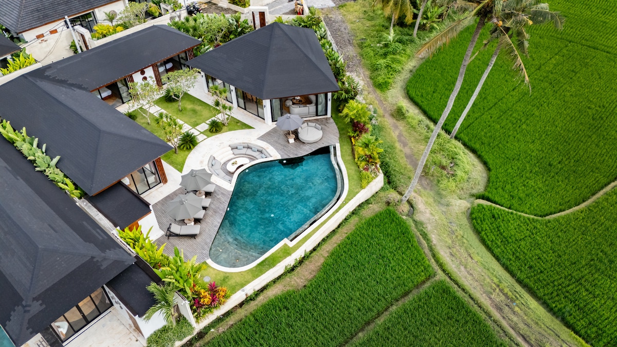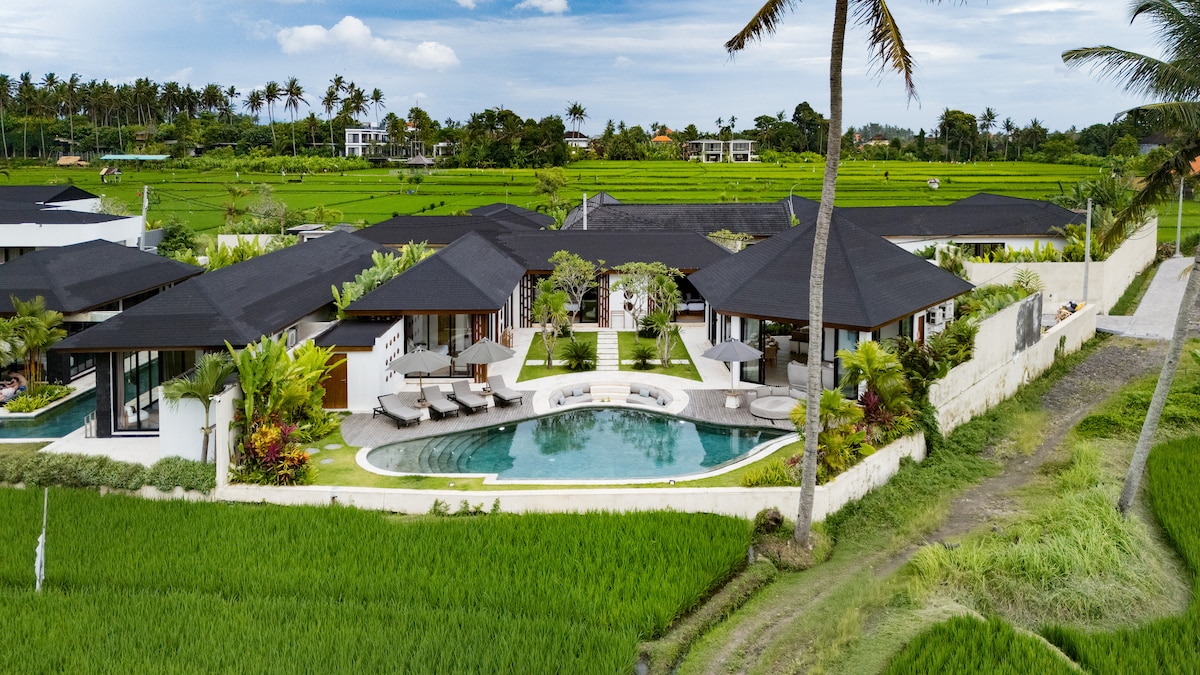 Exceptional exterior photography with outstanding rice field integration and architectural documentation. The aerial shots and pool/landscape compositions rival top performers. Minor improvements needed in reducing service-focused photos and adding more outdoor furniture staging.