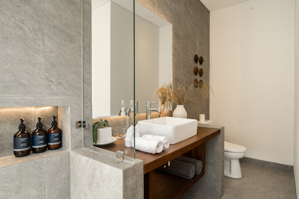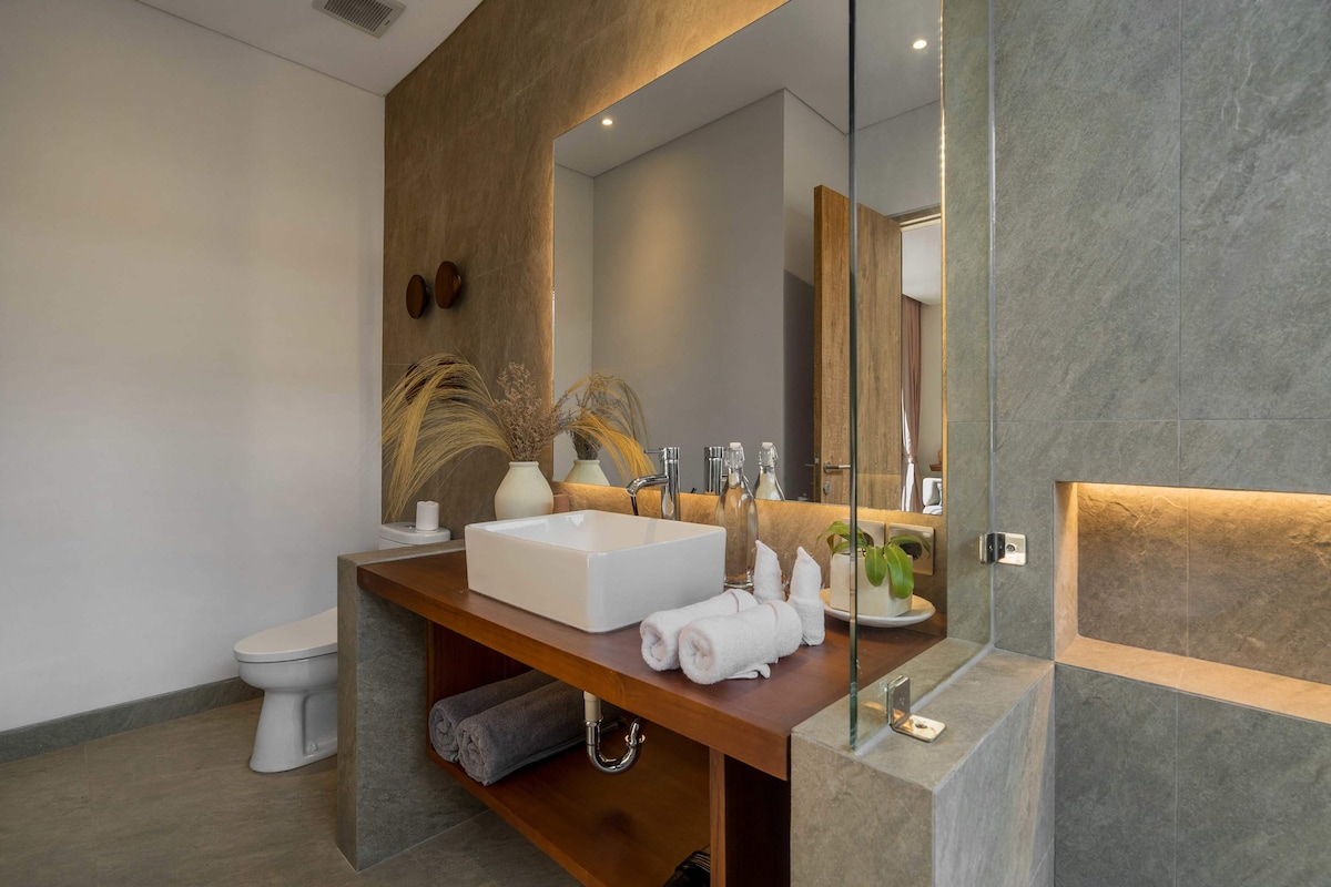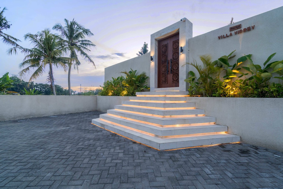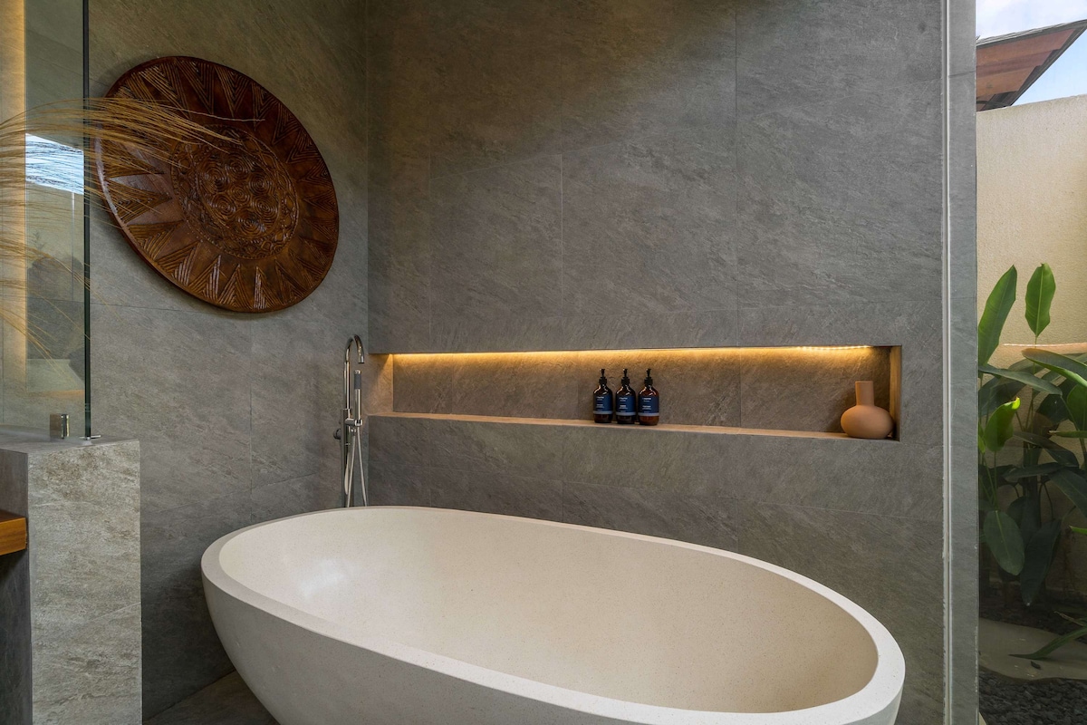 Villa Vidrev's bathroom photos are exceptionally strong with modern luxury finishes, great lighting, and tropical garden views. The freestanding tub and contemporary design compete well with top performers, though some shots could benefit from wider angles and more dramatic garden integration.