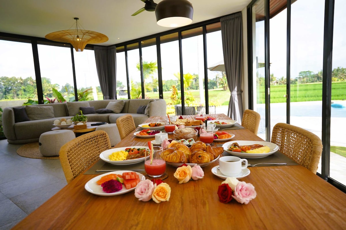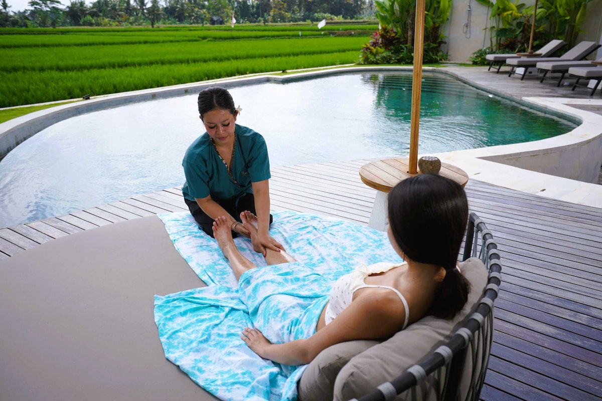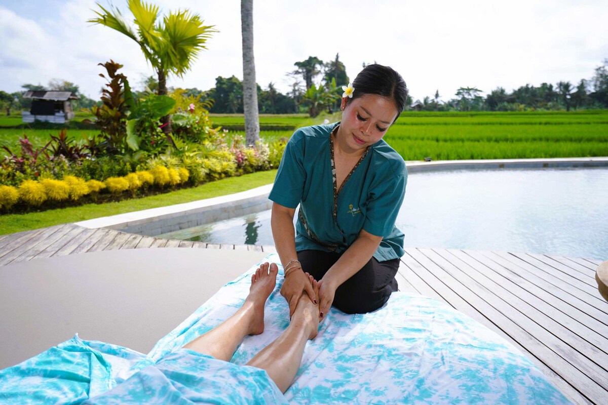 Include more surrounding landscape to show the rural Balinese setting that guests expect