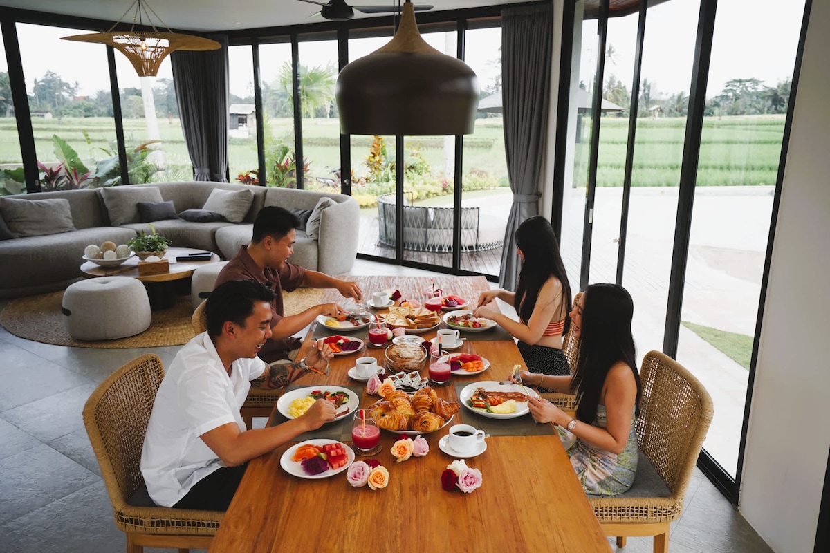 Strong photo set with excellent authentic lifestyle staging and beautiful rice field integration. Most photos effectively sell the dining experience with good natural lighting and cultural authenticity, though they lack the dramatic evening lighting that makes top performers stand out.