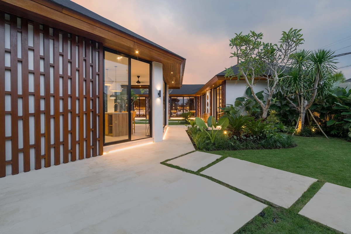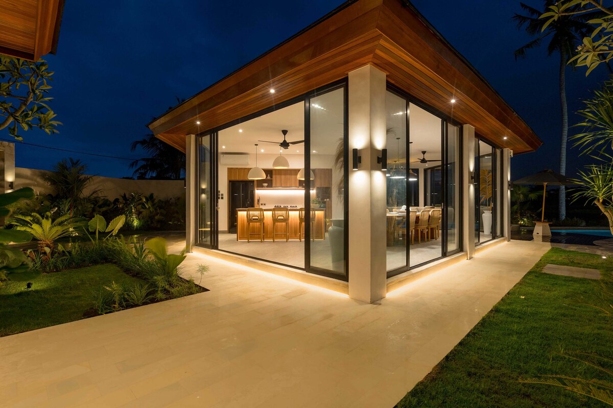 Evening lighting creates luxury ambiance that significantly increases booking appeal