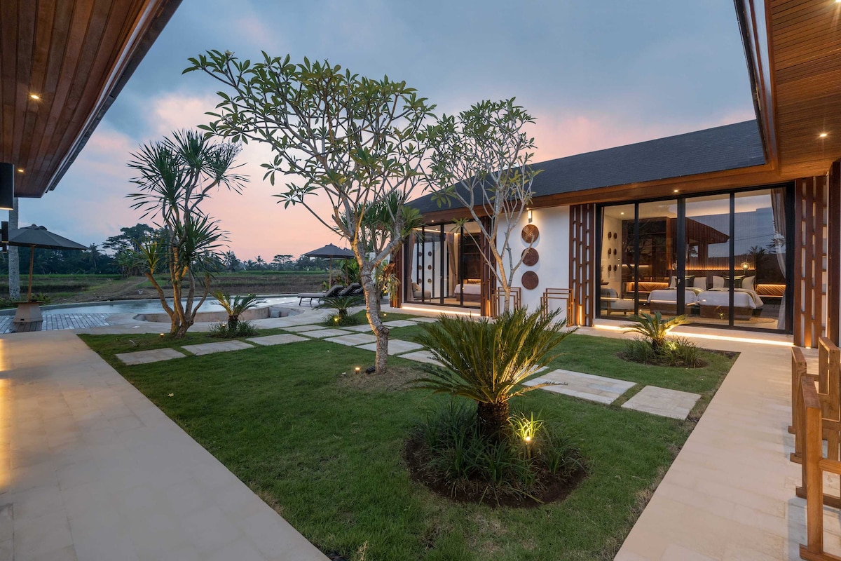 Dense landscaping creates intimate atmosphere and matches successful Ubud property aesthetics